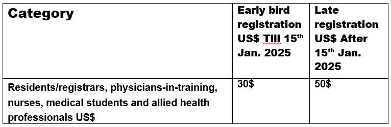 For the purpose of promoting educational program of Global Heart Forum 1st PACaTS Summit 2025 and global participation, reduced registration fees will be charged for residents/registrars, physicians-in-training, nurses, medical students and allied health professionals who fall into the category of Trainee/Nurse/Allied Health Personnel.